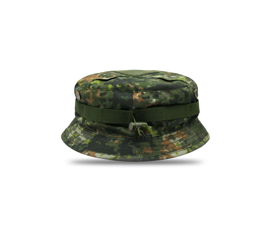 While retaining key features such as a neck cord, ventilation eyelets, and a loop band for camouflage, the V2 version introduces a more controlled fit compared to standard bush hats that rely only on fixed sizing.